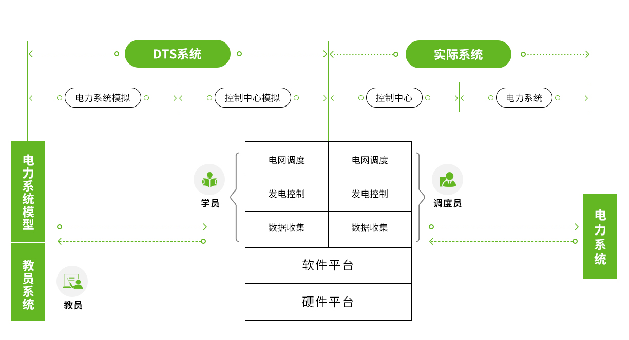 DTS系统由控制中心仿真、电力系统仿真和教员仿真三大模块组成,控制中心仿真高度还原调度操作环境,电力系统仿真精准模拟电网稳态、动态及故障工况,教员仿真模块支持灵活设置培训进程,可定制复杂场景与考核方案。系统与实际运行环境高度一致,为调度员提供沉浸式实战演练,广泛应用于调度员技能提升、事故预演及竞赛考核,是提升调度员实战能力的重要工具。